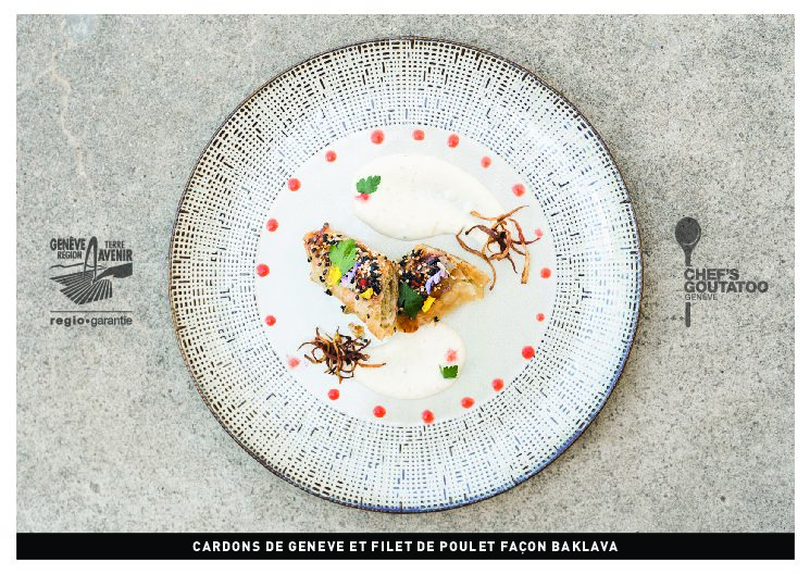 GRAVELAX DE TRUITE DU JURA, CARDON éPINEUX ET AVOCAT, VINAIGRETTE YUZU