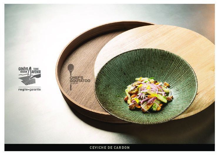 GRAVELAX DE TRUITE DU JURA, CARDON éPINEUX ET AVOCAT, VINAIGRETTE YUZU